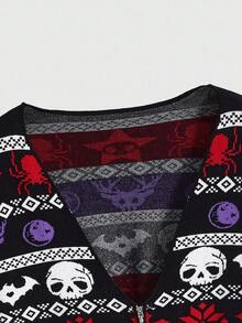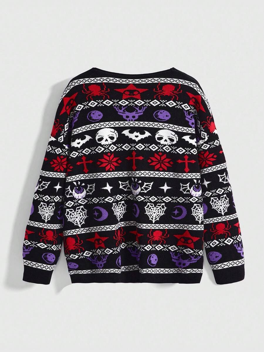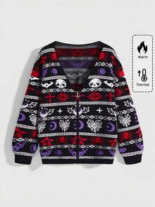 Goth Plus Size Gothic Demon, Christmas Monster, Skull, Bat, Star & Moon, Spider Christmas/Halloween Women Cardigan Sweater, Plus Size Women Sweater Top, Plus Size Autumn/Winter Gothic Cute Purple & Black Color Sweater Cardigan, Plus Size Women Christmas Sweater Outerwear