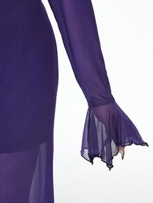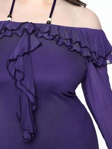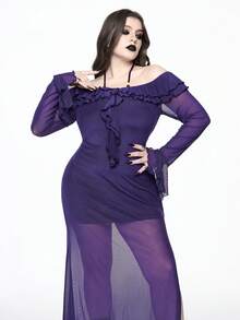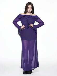 Goth Plus Size Gothic Style Ruffled Asymmetrical Hem Maxi Dress With Wooden Bead Decor, Elegant Sexy Off Shoulder Sleeveless Long Purple Dress For Autumn/Winter Party, Vintage Formal Maxi Purple Dress