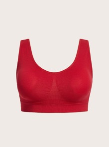 Plus Size Red Plain High Stretch Sports Bra