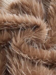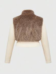 Kawaii Plus Size Retro 2 In 1 Jacket, Autumn/Winter Fur & Leather Patchwork Cardigan Coat For Women, Plus Size Brown Fur & Faux Leather Patchwork Cardigan Coat For Women, Autumn/Winter, Plus Size Brown Cardigan Coat, Autumn/Winter Holiday Christmas Party Plus Size Coat For Women