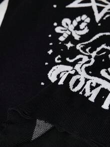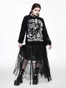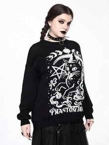Goth Plus Size Romantic Gothic Cat Moon Text Pattern Pullover Sweater Plus Size Christmas Sweater Top Plus Size Casual Gothic Romantic Street Women Sweater Jacket Plus Size Women Black Sweater Vintage Romantic Dark Gothic Pattern Casual Black Sweater Everyday Plus Size Women Sweater