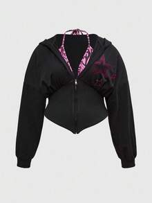 J-Fashion Plus Size Shibuya Gyaru Y2K Rhinestone Star Halter Neck 2 In 1 Drawstring Hoodie/Winter
