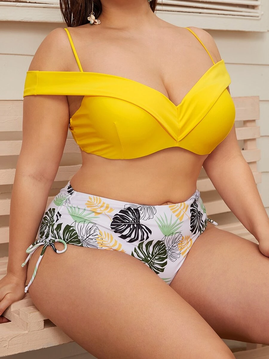 Plus Size Tropical Underwire Bikini Set Summer Beach
