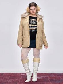 Hippie Plus Size Vintage Romantic Hippie Versatile Winter Corduroy Fur Collar Design Long Sleeve Button-Up Jacket
