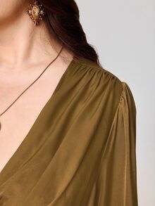EDITION Plus Size Women's Fall Deep V-Neck Medieval Vintage Satin Puff Sleeve Dress With Detachable Waist Tie