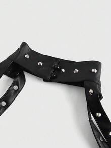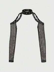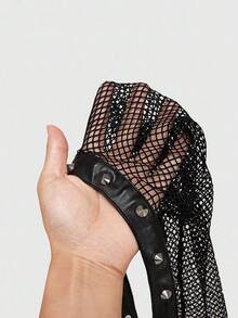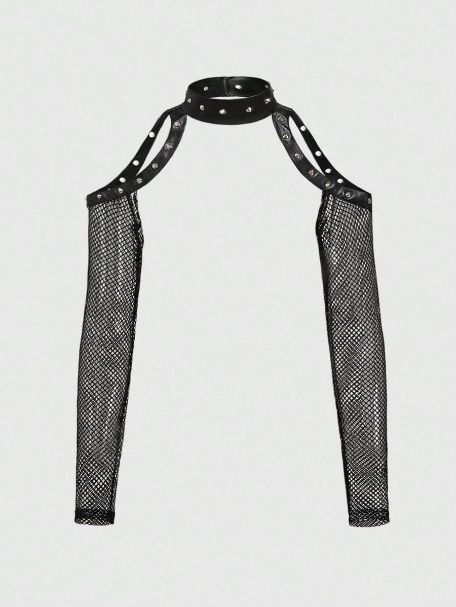 Grunge Punk Plus Size Women's Functional Cargo Futuristic PU Patchwork Mesh See-Through Vest Top