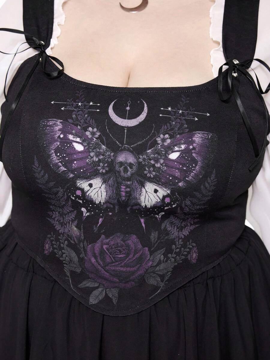 Plus Size Women Gothic Mysterious Butterfly & Floral Print Vintage Thick Strap Tank Top