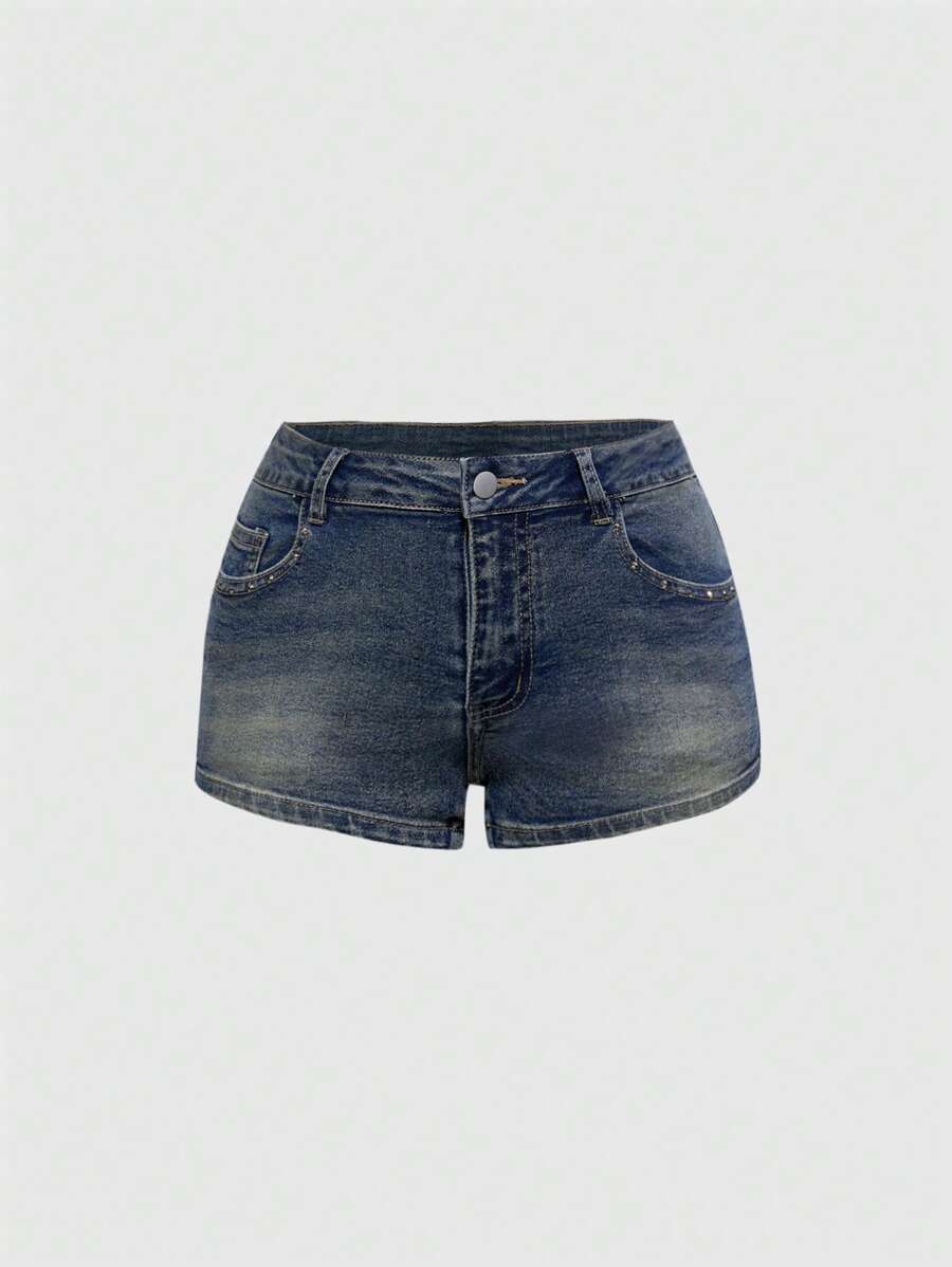 J-Fashion Plus Size Women Retro Y2K Sexy Low Waist Letter Embroidered Heart Cross Rhinestone Distressed Denim Shorts