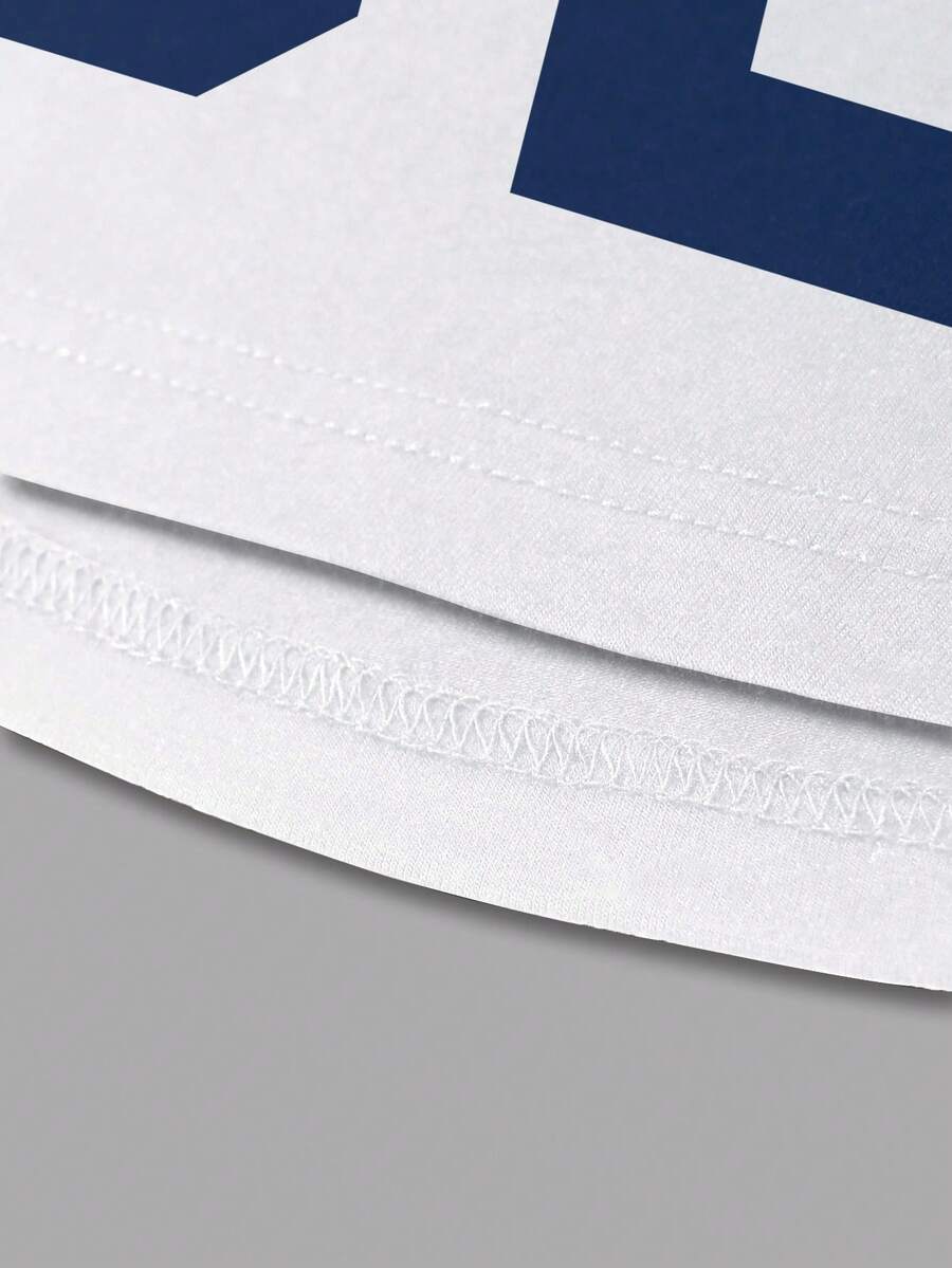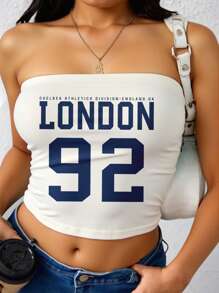 Plus Size Women's Casual Sports London Number Slogan Print Blue & White Tank Top, Suitable For Summer