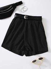 Plus Slant Pocket Corduroy Shorts Without Belt, For Winter