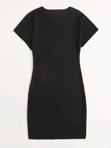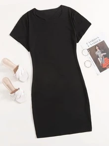 Plus Solid Round Neck Bodycon Dress