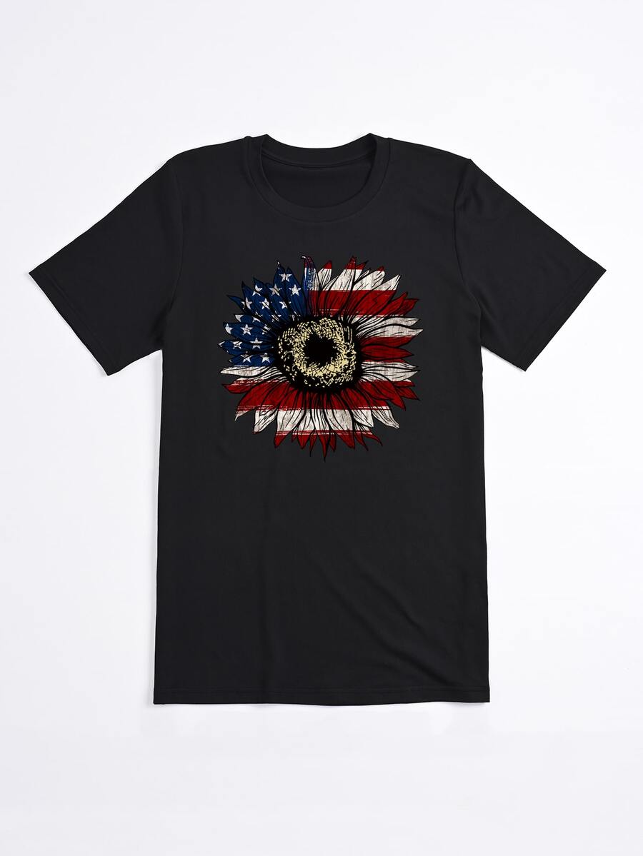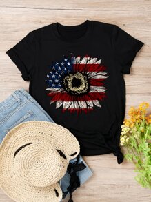 Plus Sunflower & American Flag Print Tee