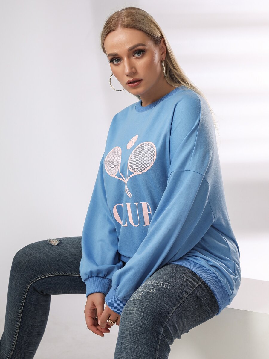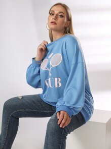 Plus Tennis And Letter Graphic Drop Shoulder Sweatshirt