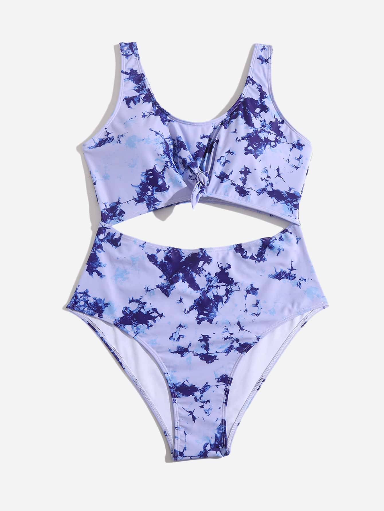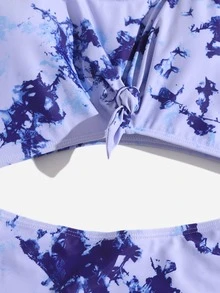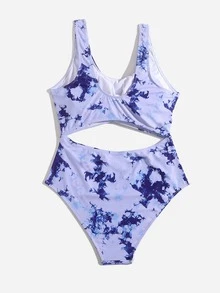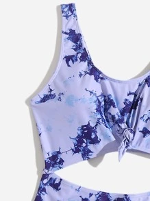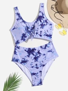 Plus Tie Dye Knot Front One Piece Swimsuit