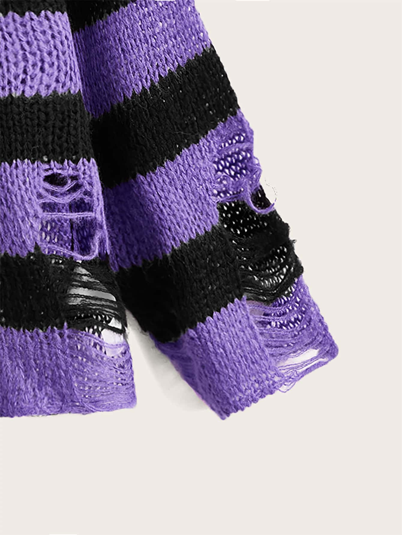 Plus Two Tone Drop Shoulder Ripped Sweater