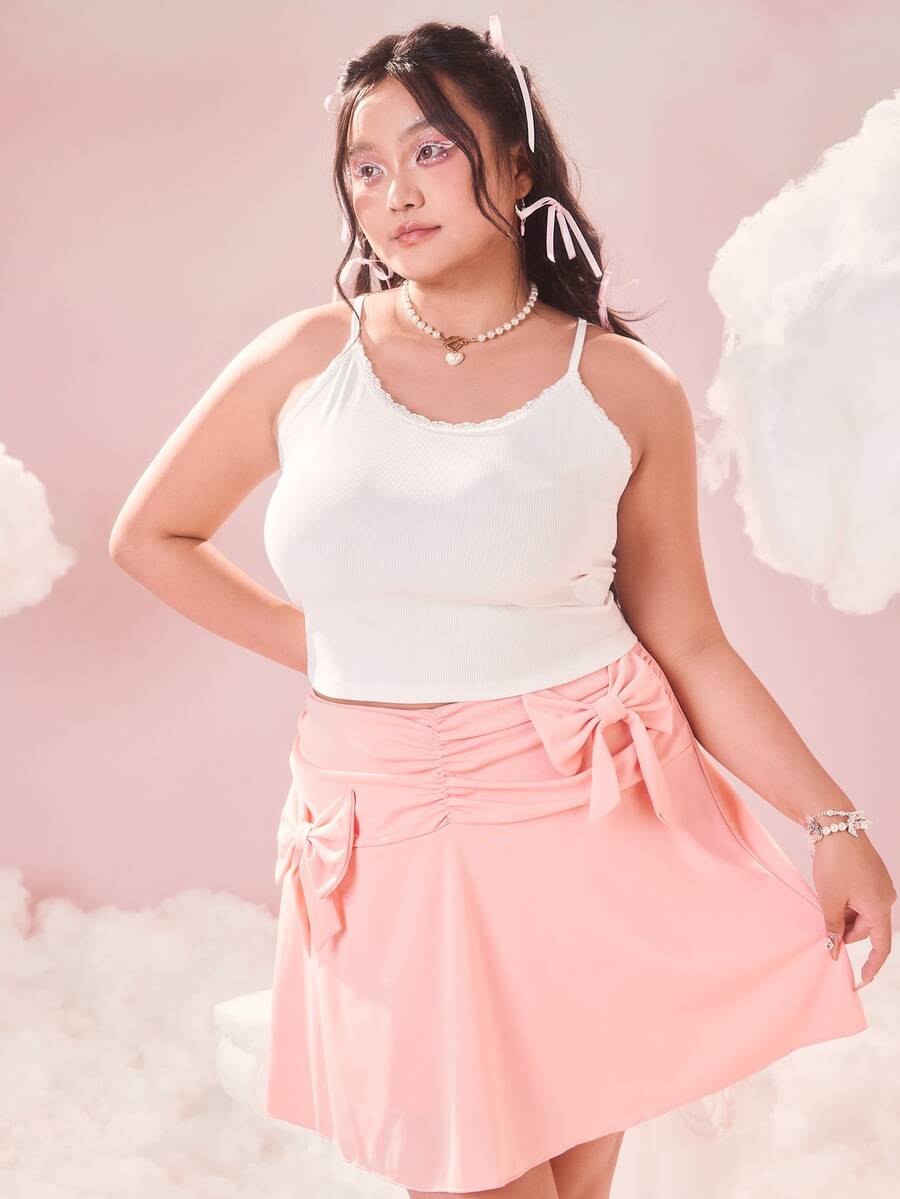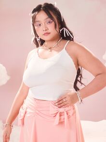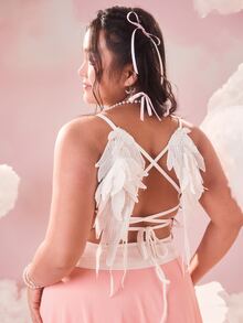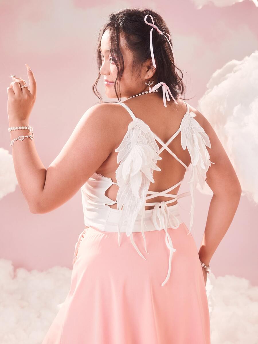 Plus Wing Decor Lace Up Backless Cami Top