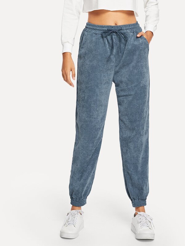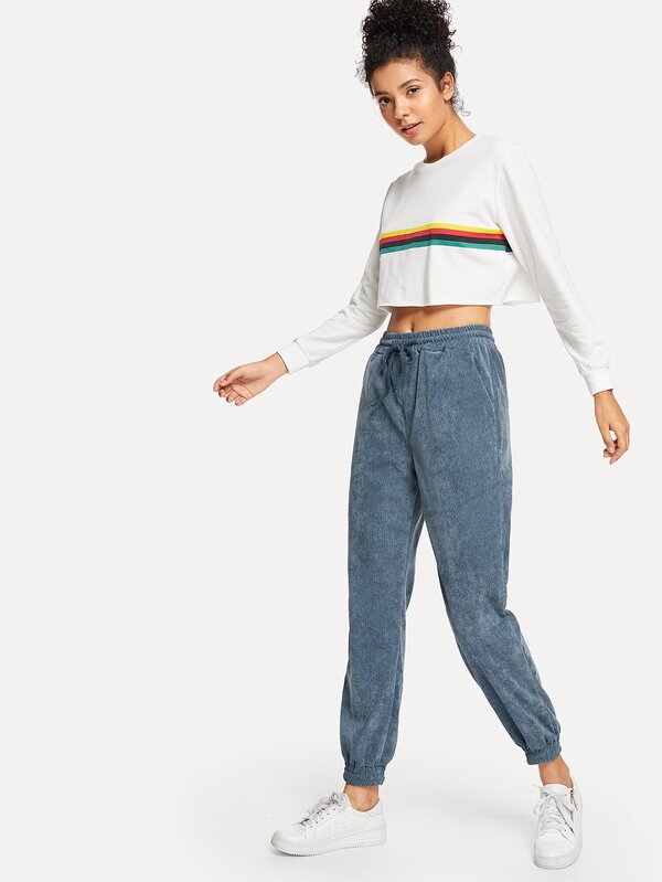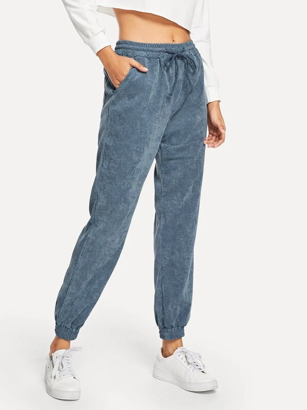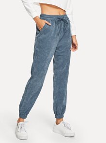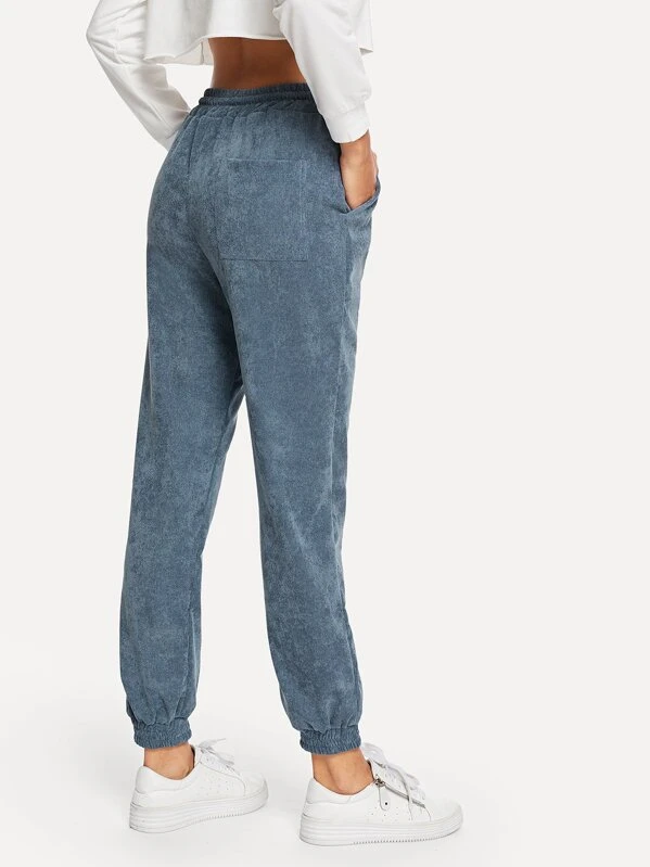 Pocket Decoration Solid Corduroy Pants