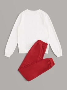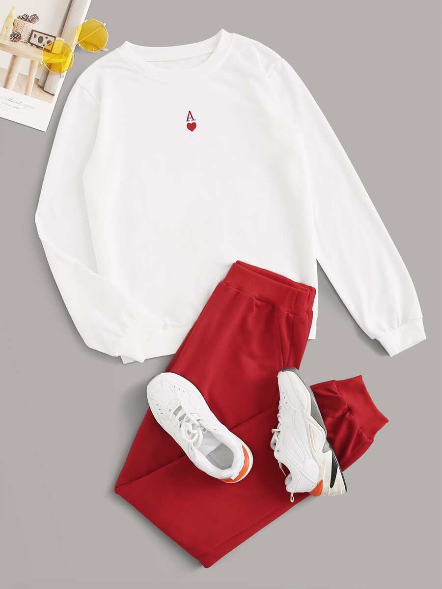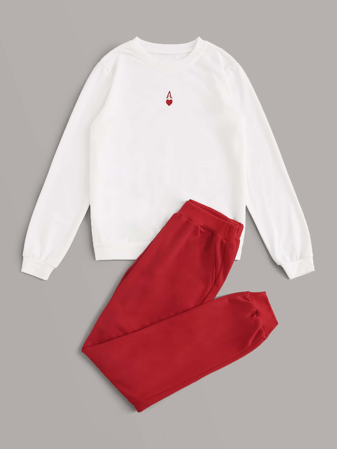 Poker Card Embroidery Sweatshirt & Red Jogger Sweatpants