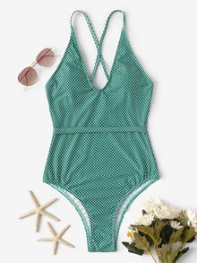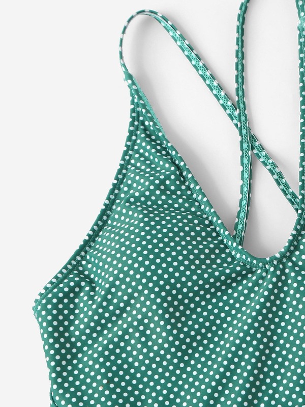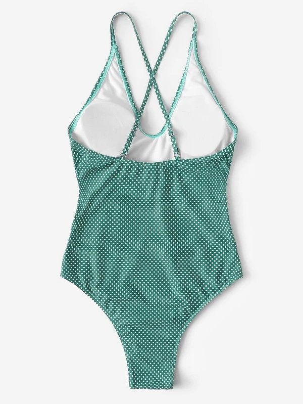 Polka Dot Criss Cross One Piece Swimwear