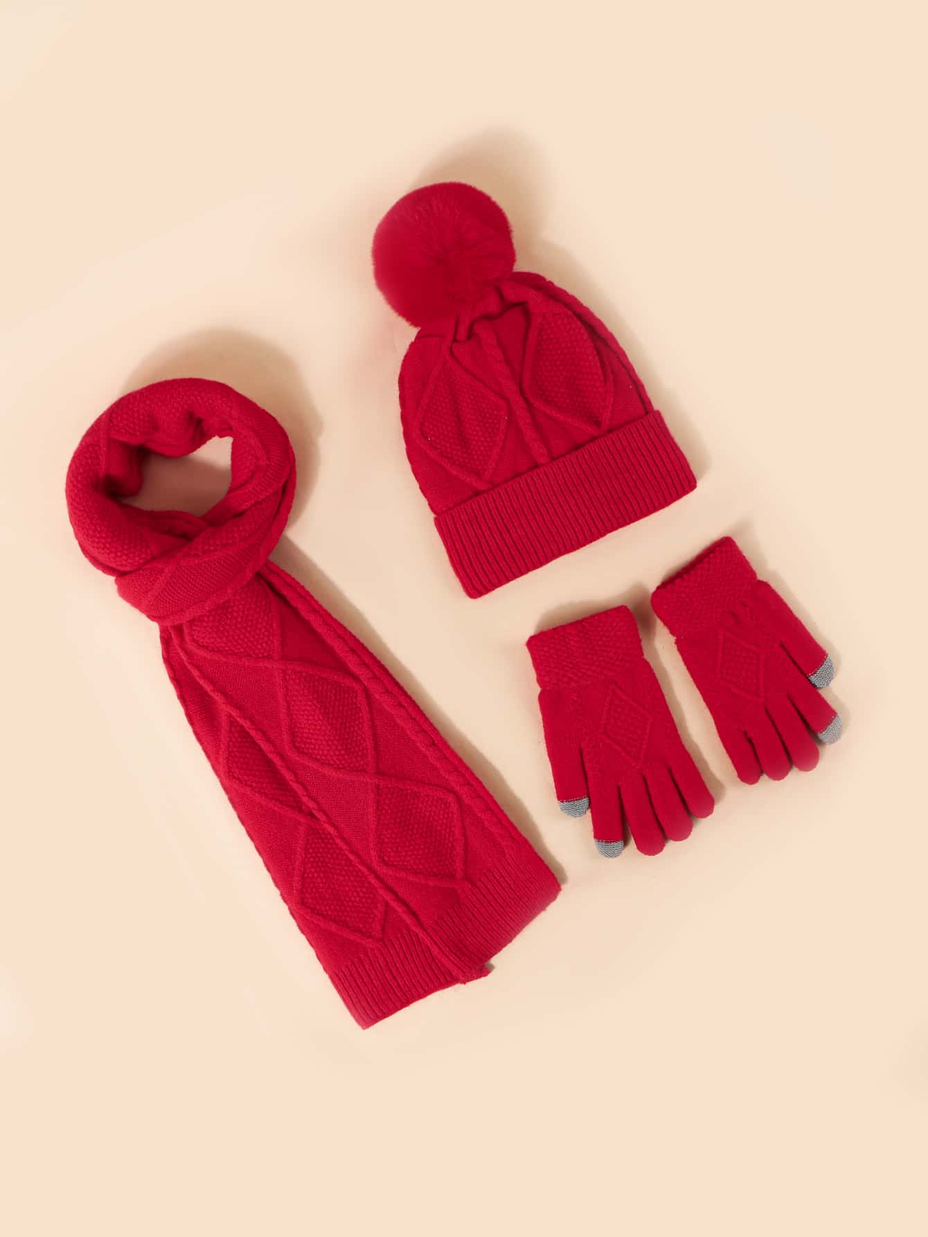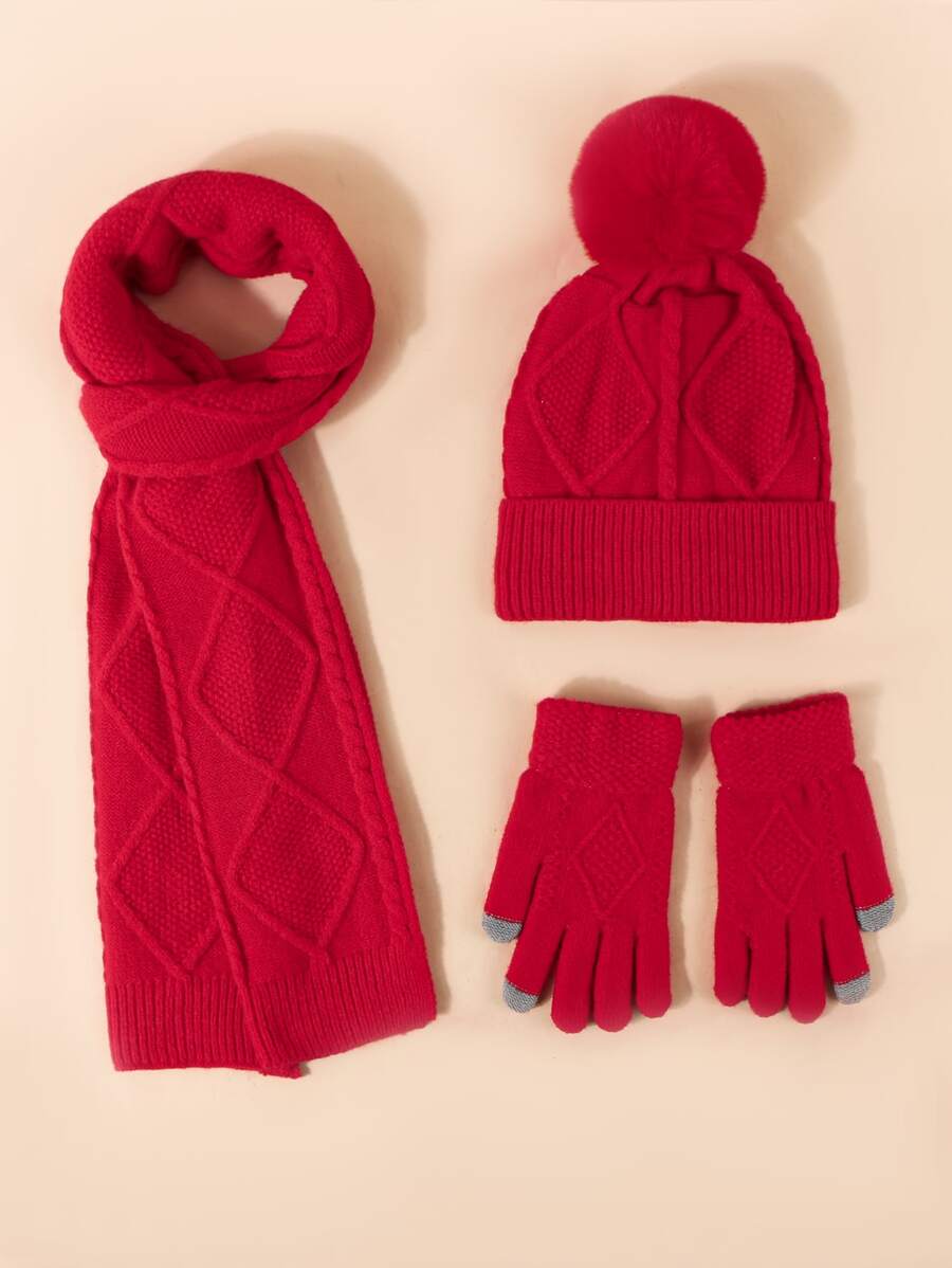 1pc Unisex Diamond Pattern Y2k Style Ski Hat, Scarf & Gloves Set, Warm & Breathable, Suitable For Daily Wear And Outdoor Activities In Autumn And Winter