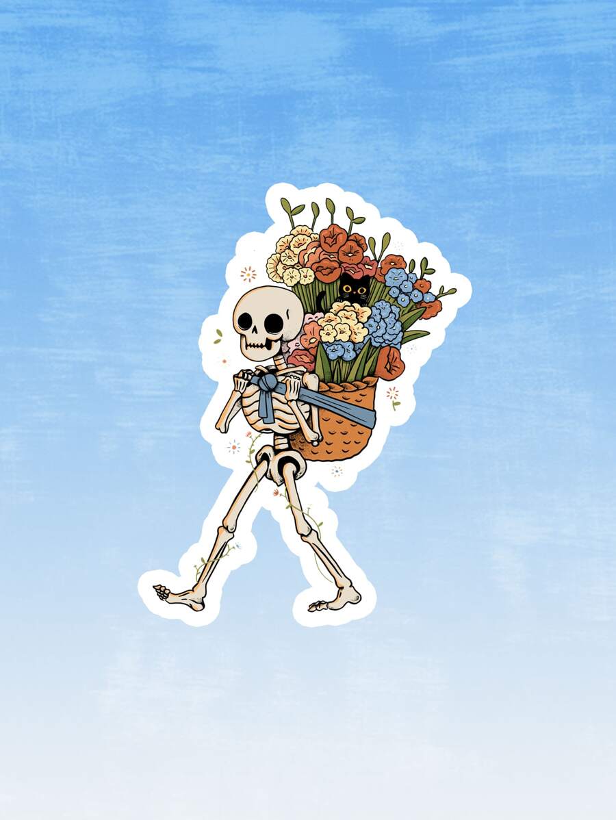 Ppmid Flower & Skeleton Print Decorative Sticker