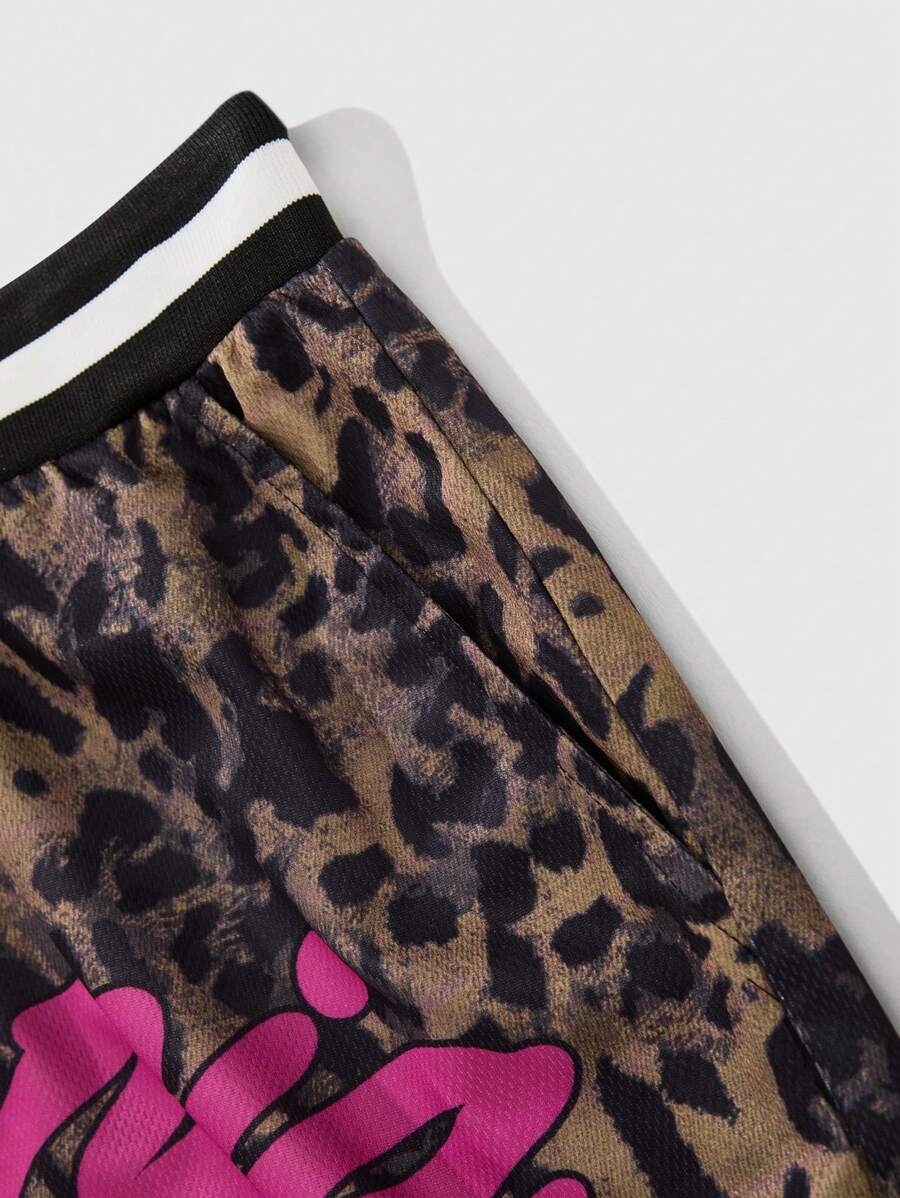 Prep 2pcs Men's Leopard Printed Basketball Jersey And Shorts Set, Casual And Simple For Everyday Wear