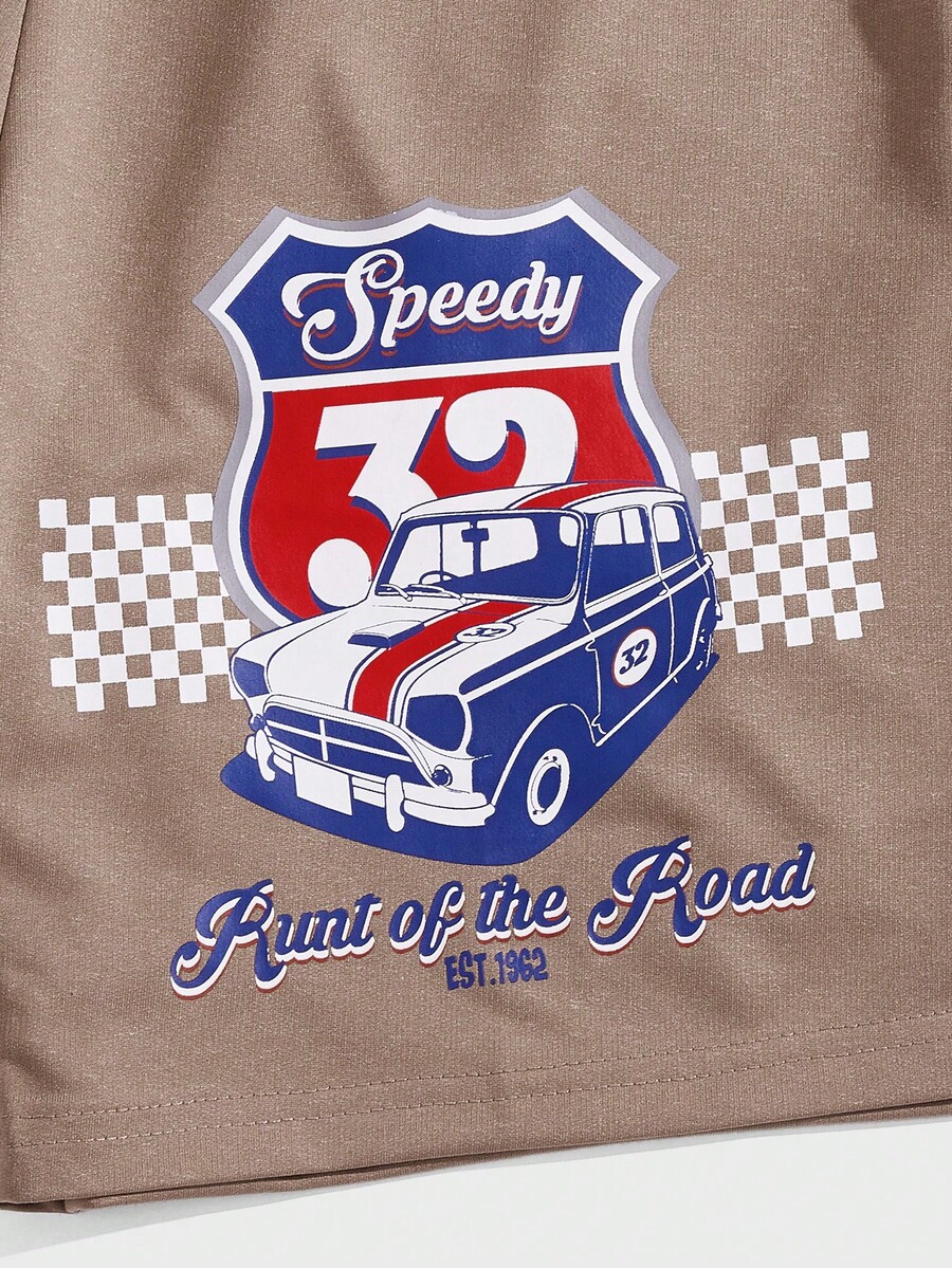 Prep Guys Car Graphic Drawstring Waist Shorts