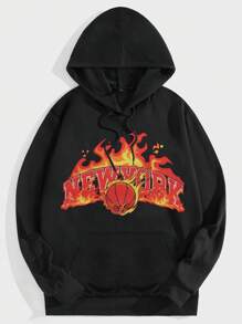 Prep Guys Fire & Letter Graphic Drawstring Hoodie