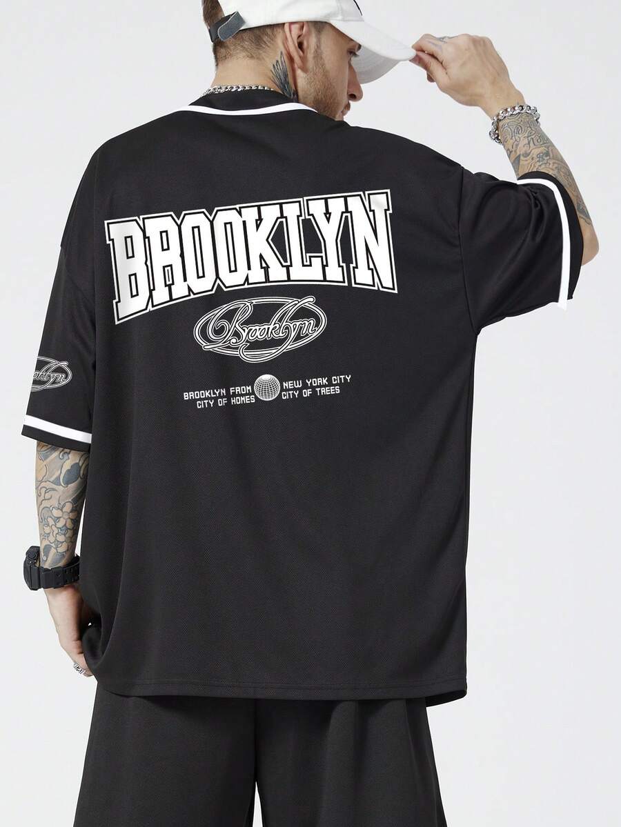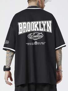 Prep Guys Letter Graphic Contrast Trim Shirt