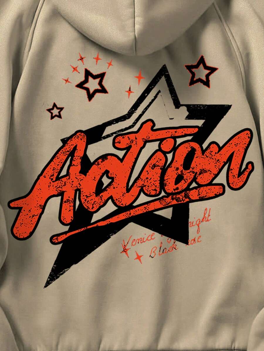 Prep Men Star & Letter Graphic Raglan Sleeve Drawstring Thermal Hoodie