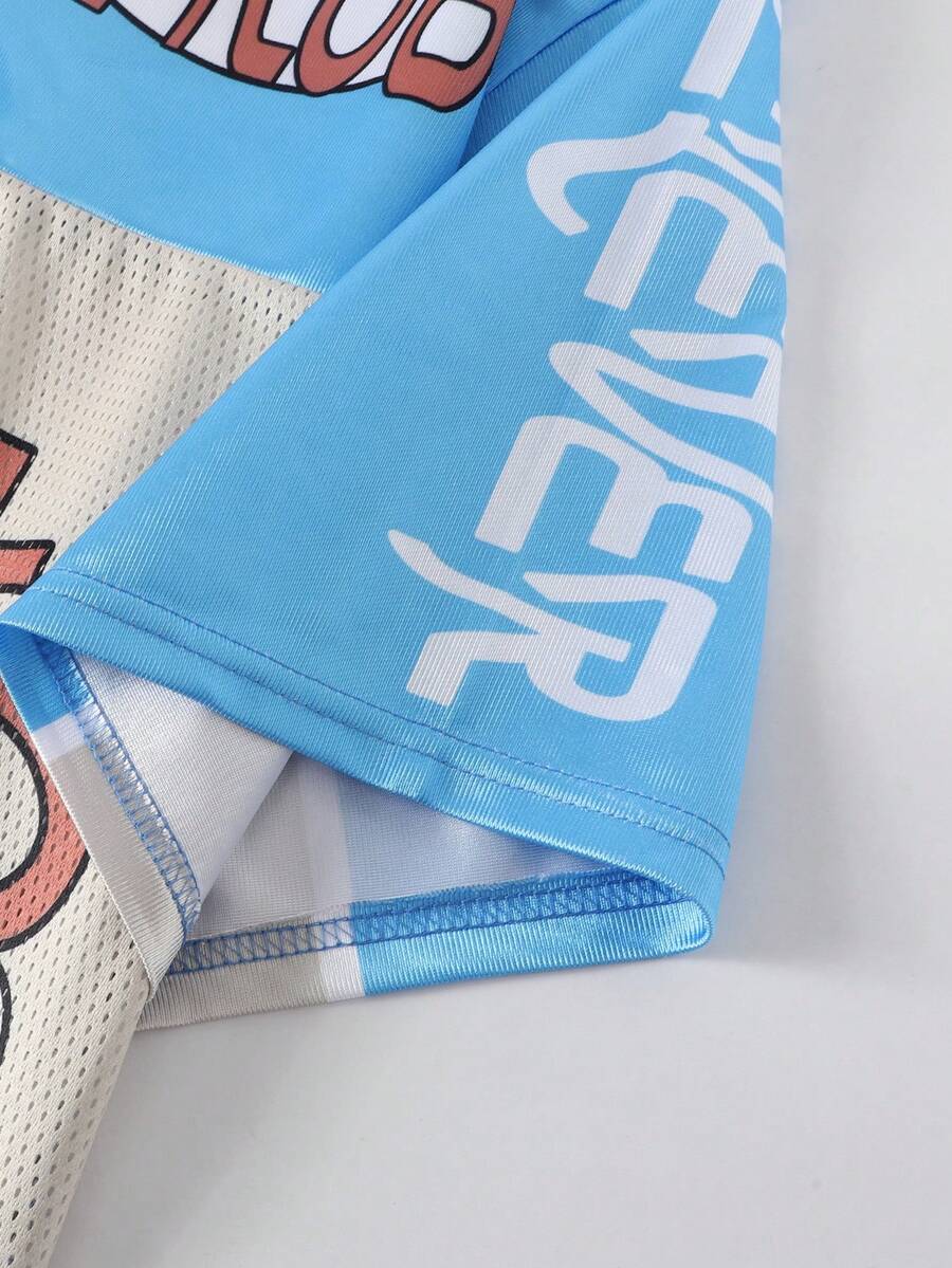 Prep Men's Cartoon Jersey Mesh Splice Short Sleeve Sports T-Shirt, Vacation