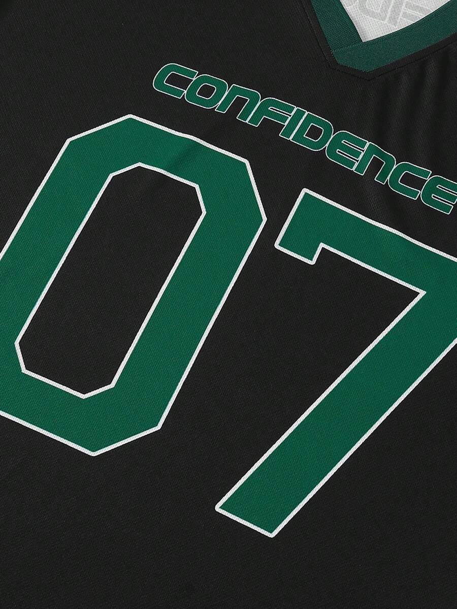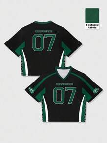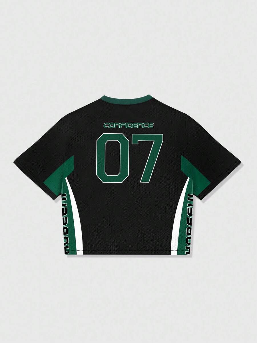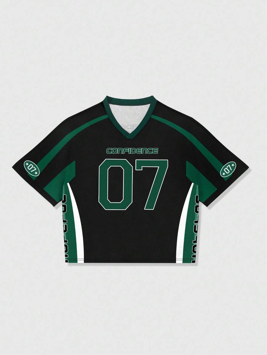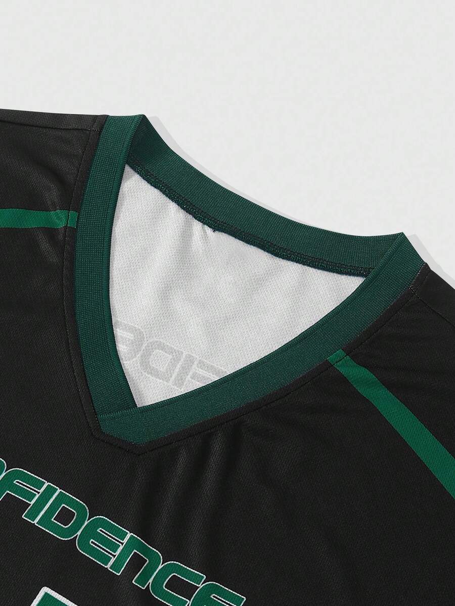 Prep Men's Casual Street Style Contrast Color Number & Letter Print Short Sleeve T-Shirt Jersey