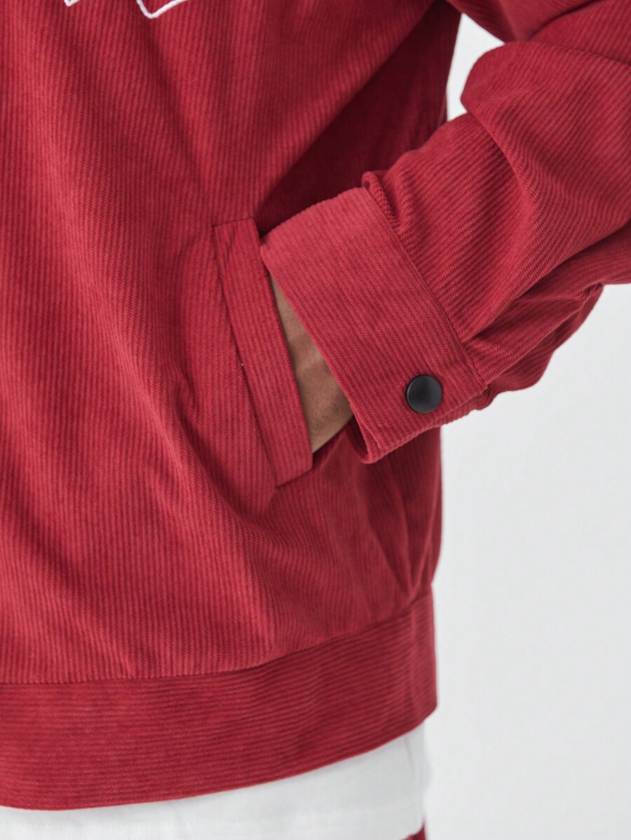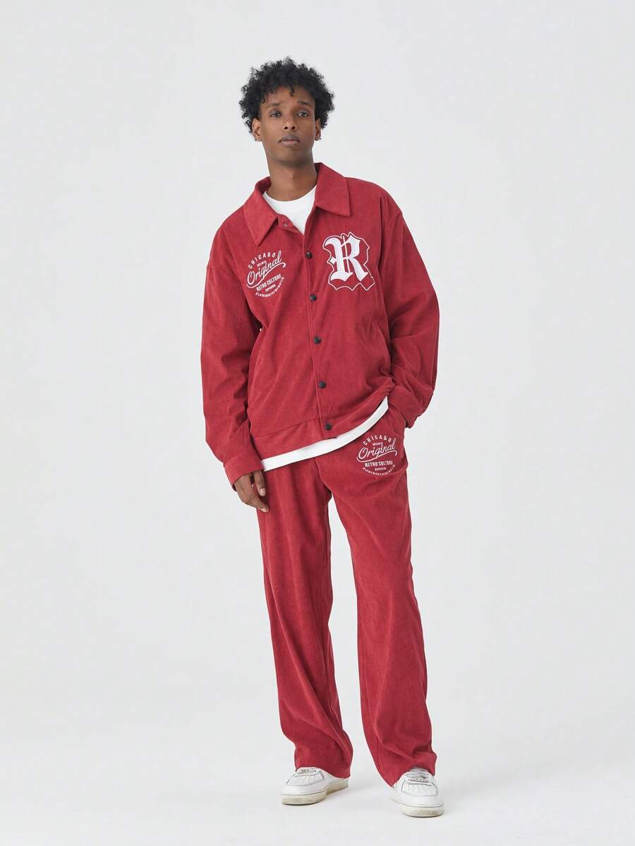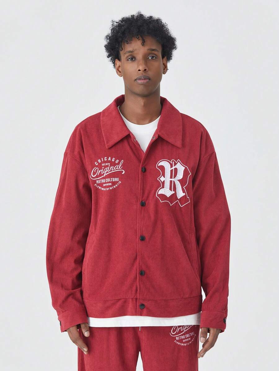 Prep Men's Front Button Long Sleeve Letter Print Casual Minimalist Jacket, Daily Wear