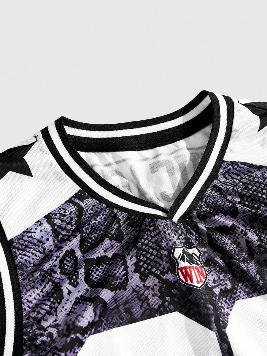 Prep Men's Jersey Basketball Leopard Fashionable Sleeveless Tank Top, Suitable For Summer