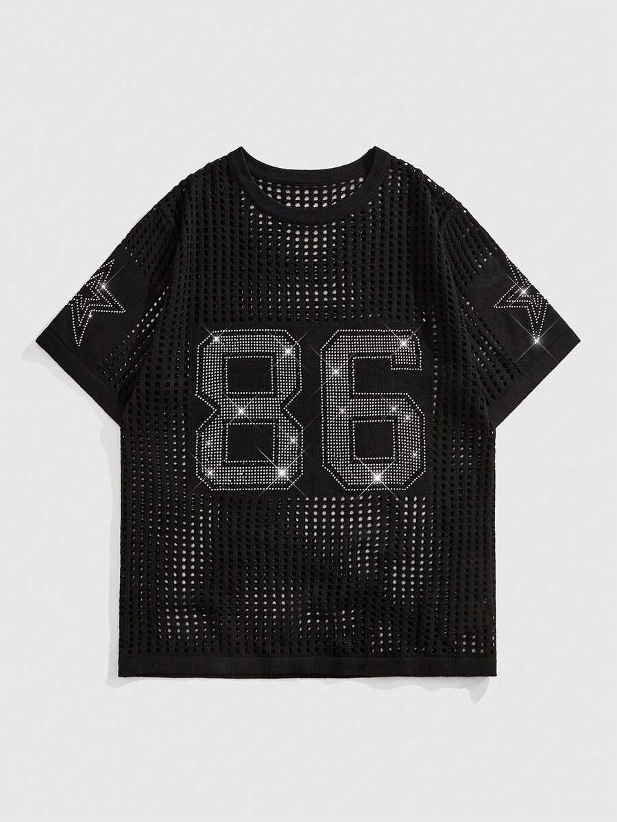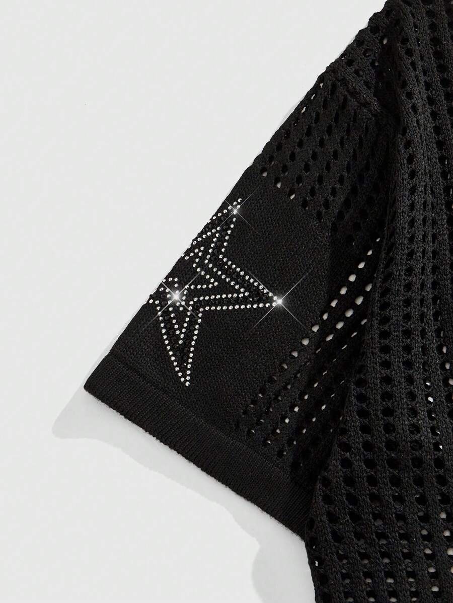 Prep Men's Jersey Fashion Rhinestone Hollow Out Knit Sweater, Summer