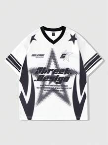 Prep Men's Jersey Slogan & Pentagram Print Short Sleeve Sports Jersey T-Shirt