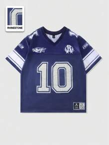 Prep Men's Jersey Sparkling Diamond Mesh Patchwork Sport Shirt, Athletic Jersey