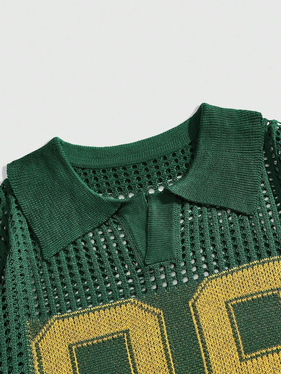 Prep Men's Jersey Turndown Collar Digital Jacquard Knit Short Sleeve Top, Football Style