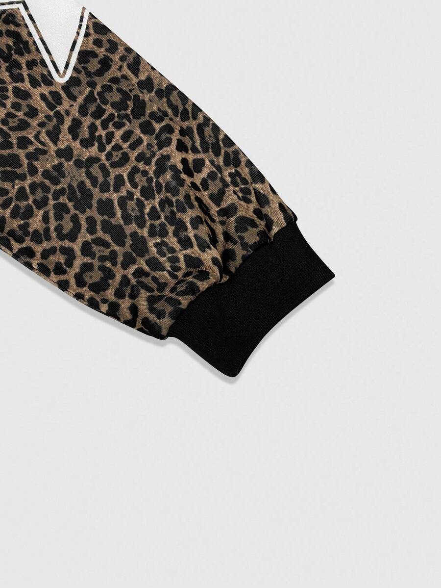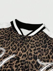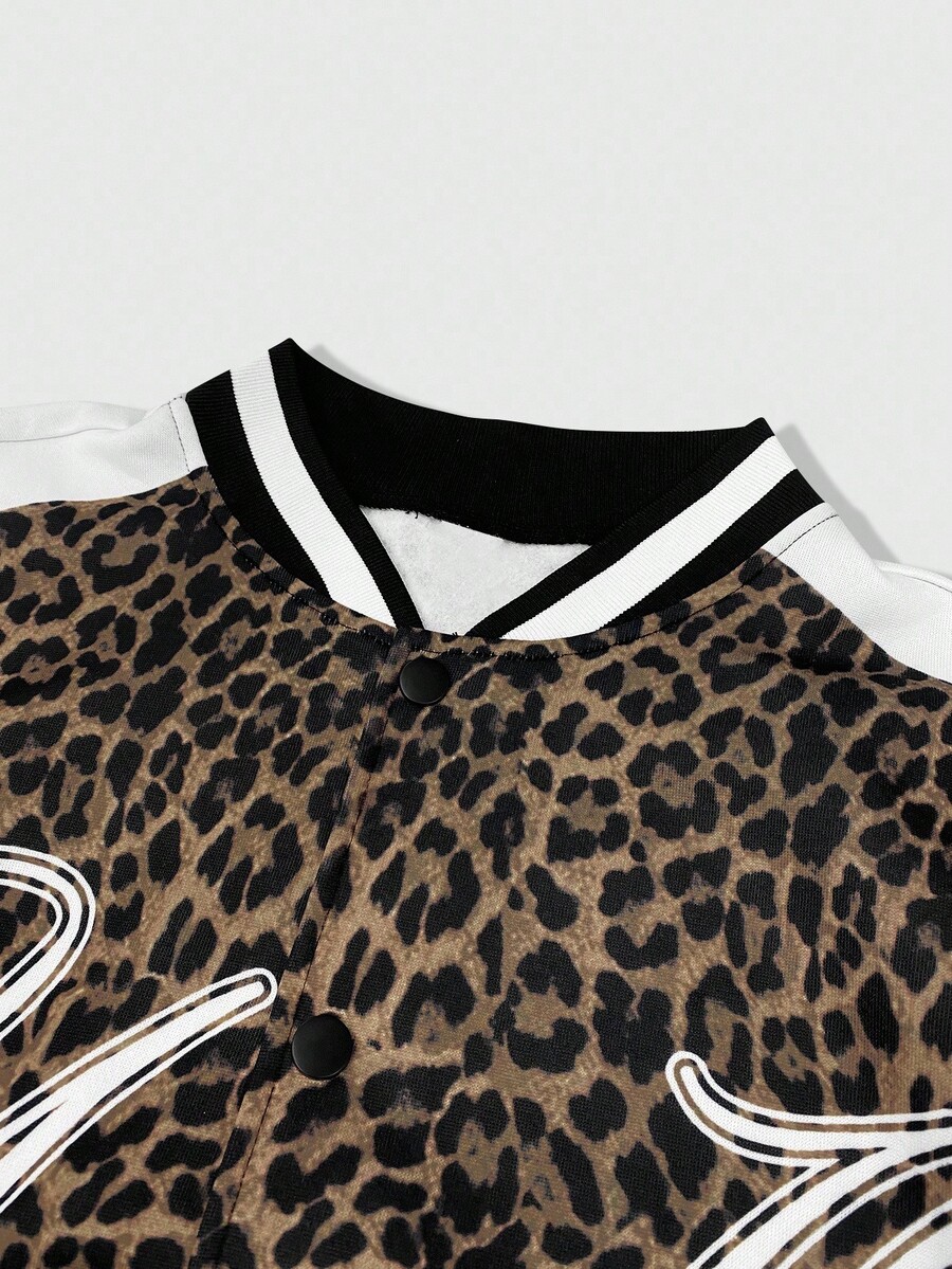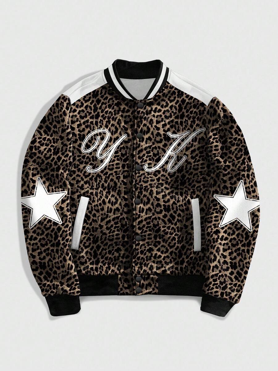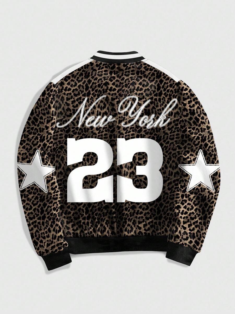 Prep Men's Leopard Print Digit Graphic Long Sleeve Fashion Baseball Jacket, Autumn