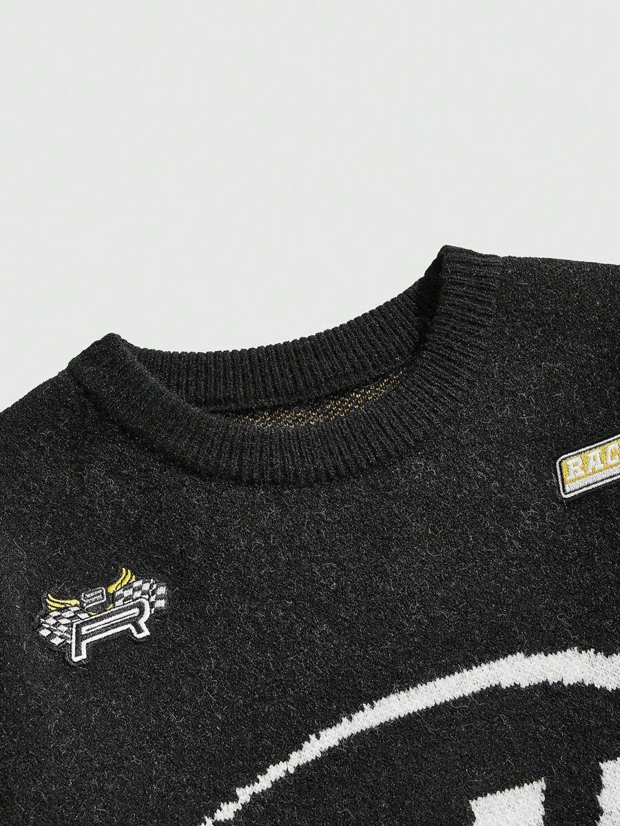 Prep Men's Letter Pattern Long Sleeve Casual Racing Sweater, Autumn/Winter