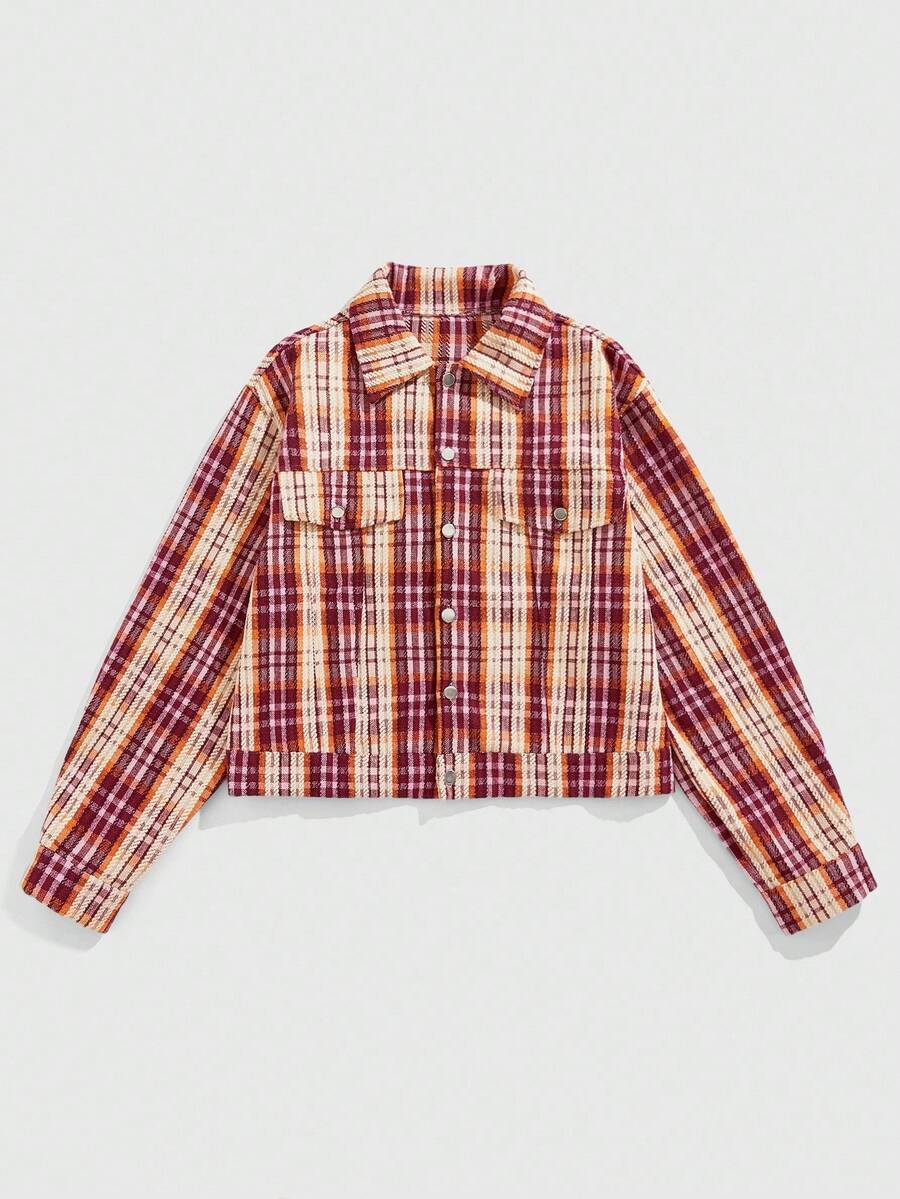 Prep Men's Plaid Jacket, Loose Cropped Style, Fall Winter