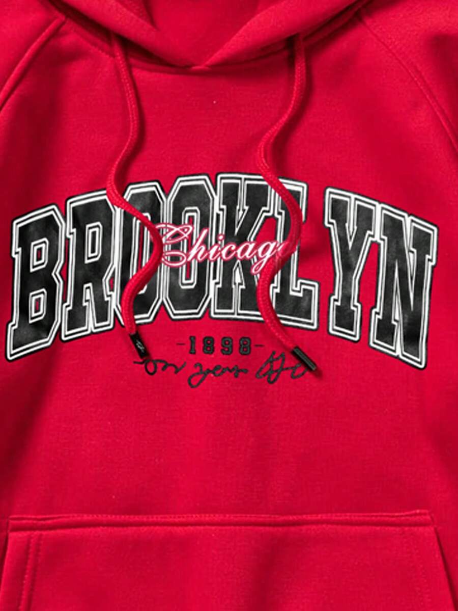 Prep Men's Simple Letter Graphic Hooded Long Sleeve Sweatshirt, Casual Red Hoodie, School
