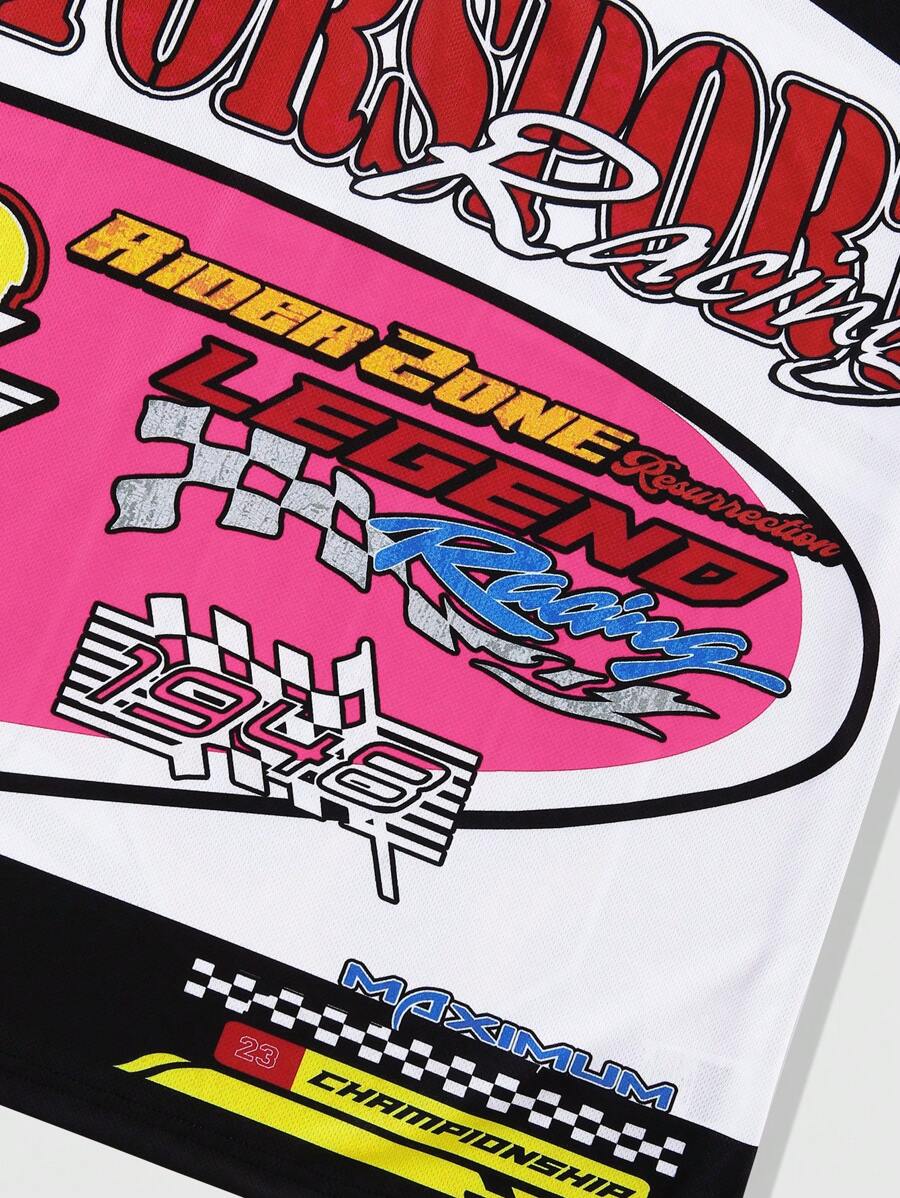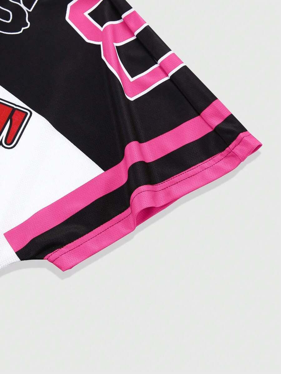 Prep Men's Street Color Block Number Letter Print Short Sleeve Casual T-Shirt, Summer
