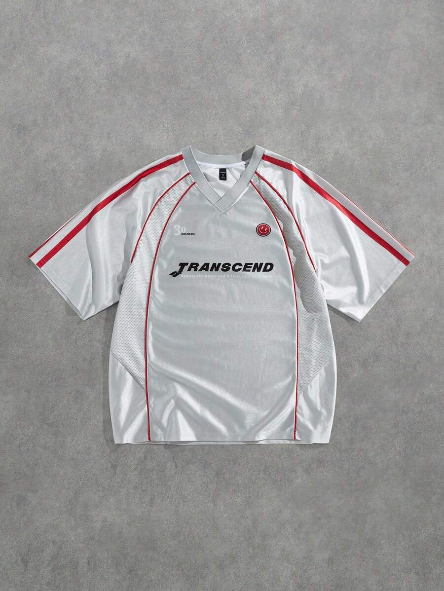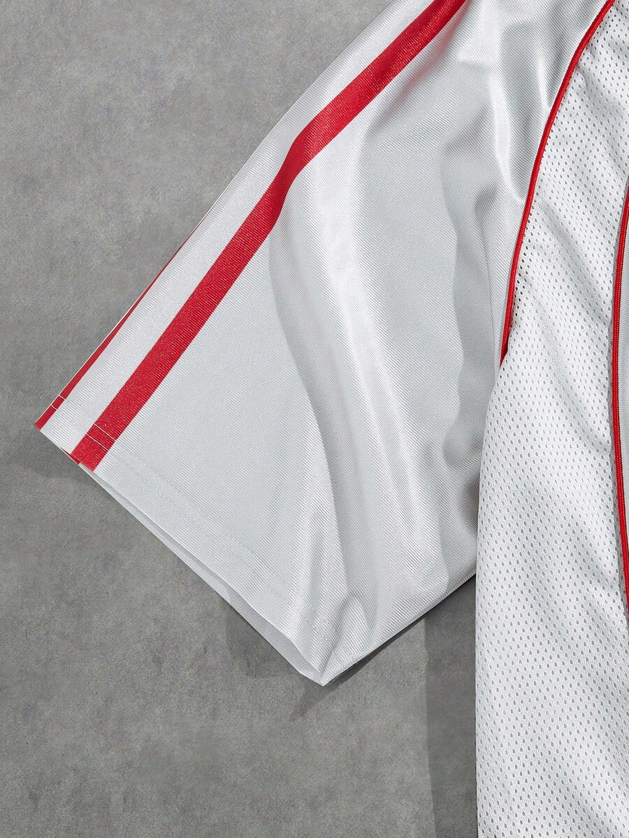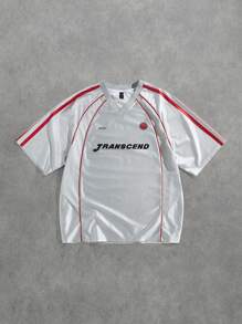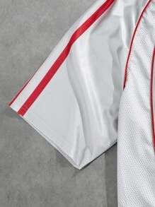 Prep Men's Summer Casual Contrast Trim Slogan Print Polo Shirt Jersey