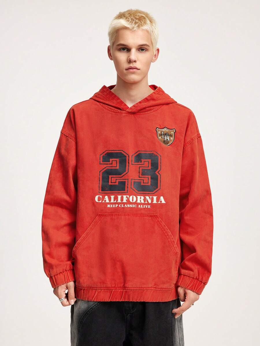 Prep Men's Vintage Letter Print Hooded Denim Jacket, Street Fashion