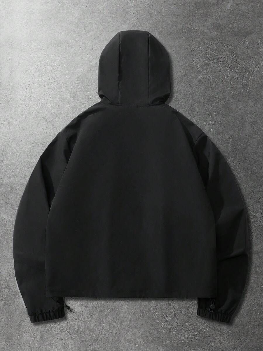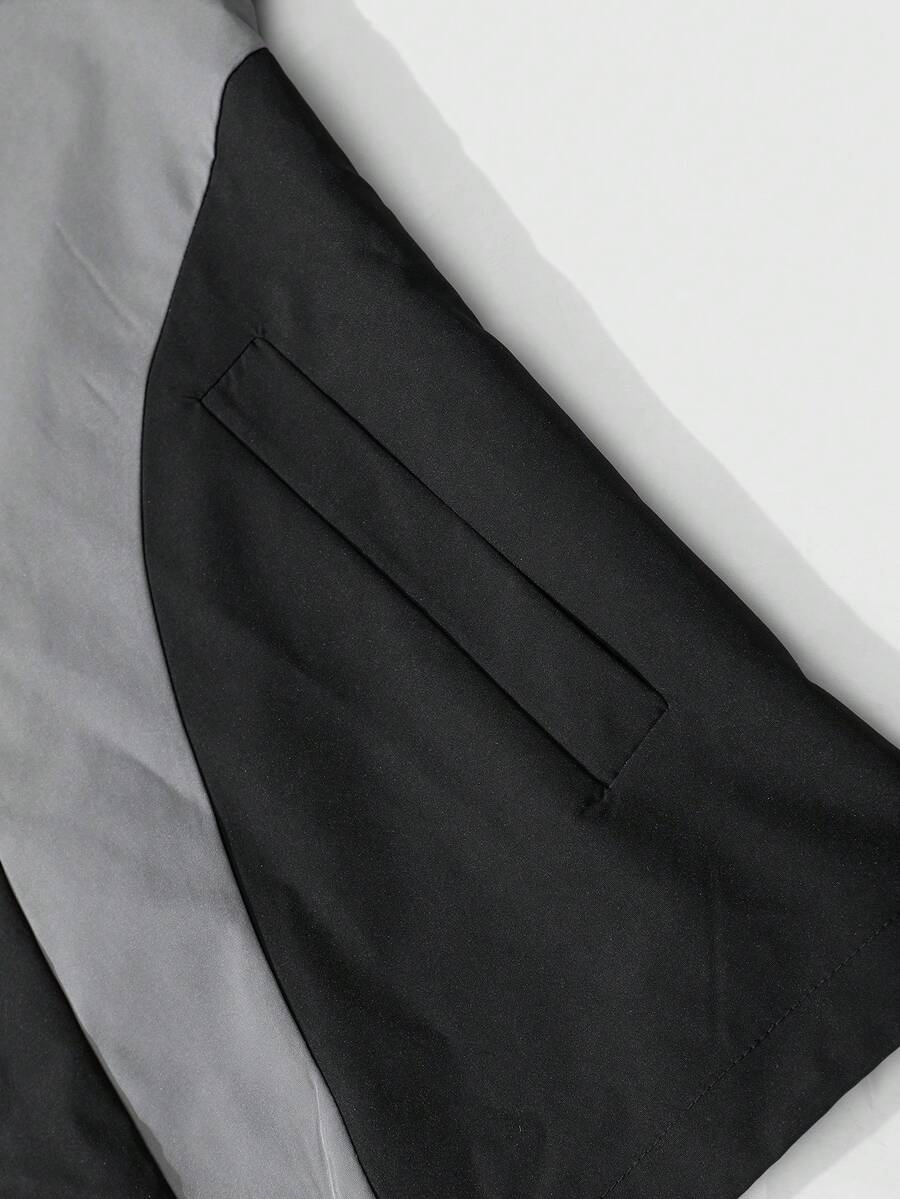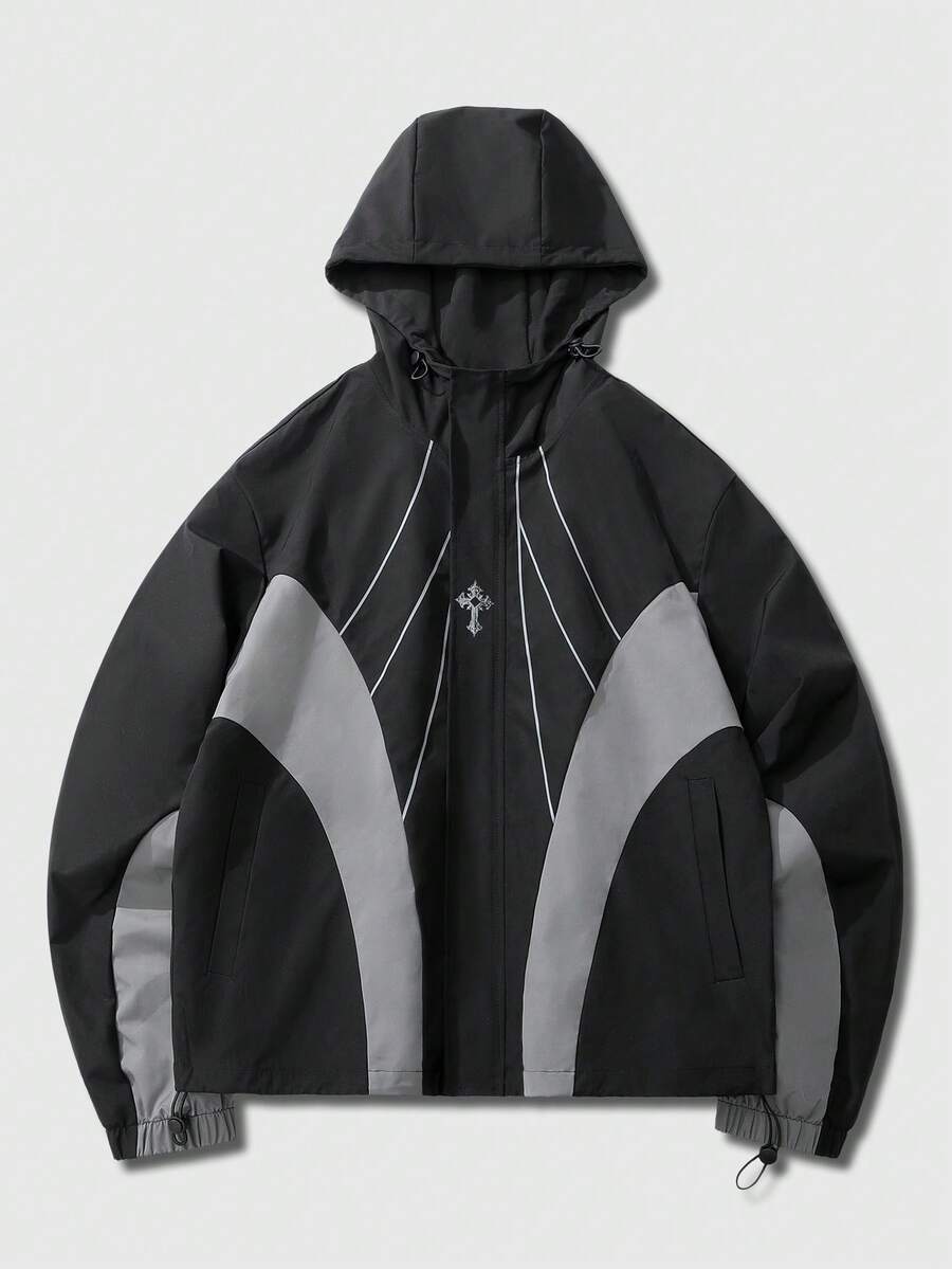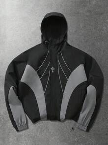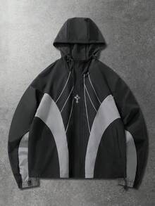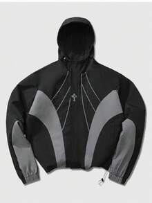 Prep Unisex Contrast Color Patchwork Windbreaker Long Sleeve Jacket, Casual Hooded Jacket For Autumn/Winter