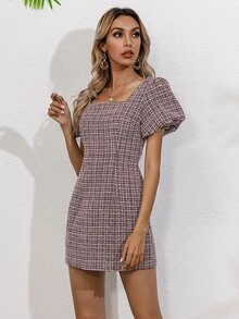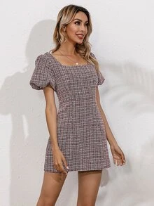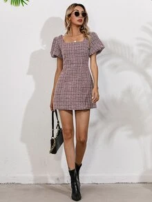 Puff Sleeve Tweed Dress