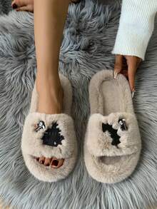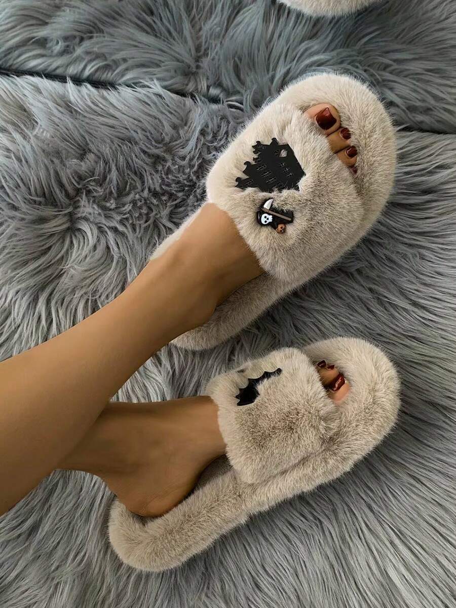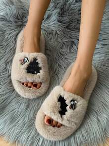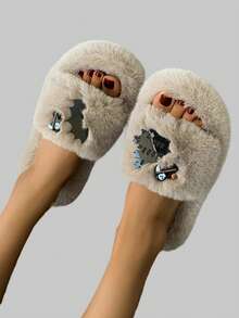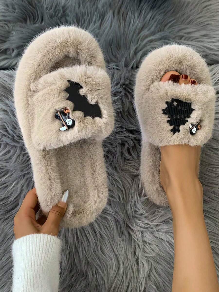 Punk Bat Skull Decorated High Plush Slip-On Slippers With Thick Soles