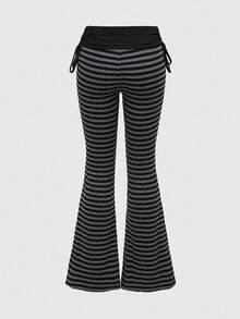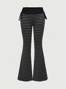 Grunge Punk Punk Style Striped Contrast Color Drawstring Flare Leg Pants For Women