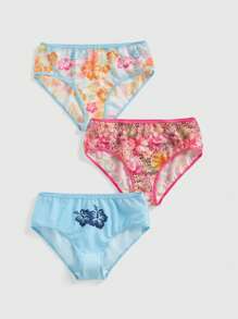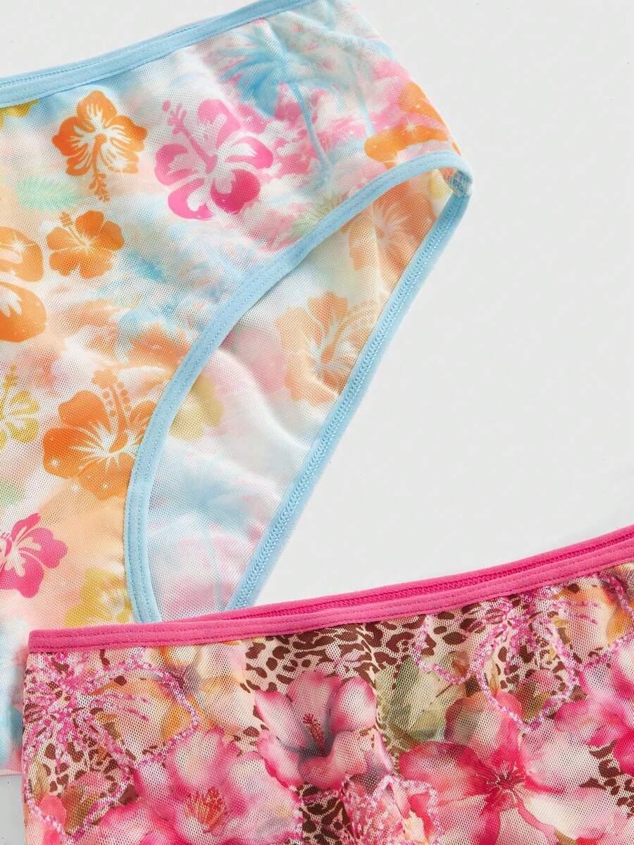 ROMWE Avant 3 Pack Women's Tropical Floral, Coconut Tree & Leopard Print Mesh Triangle Panties